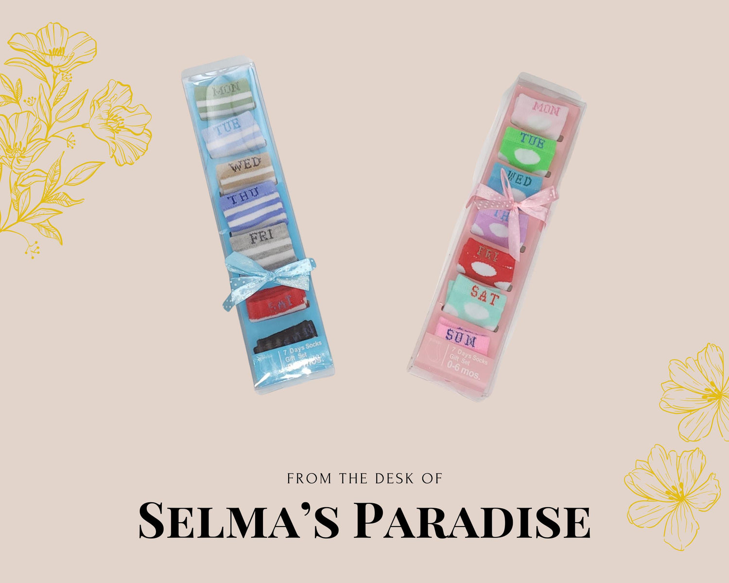 ⦿ Unique colorful socks for baby boys & girls, one for each day of the week.